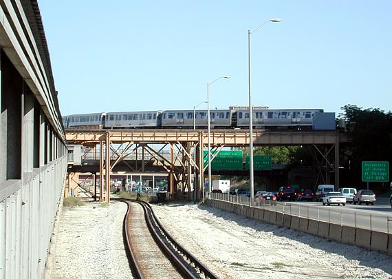 the inbound Eisenhower track and the eastbound expressway lanes in this