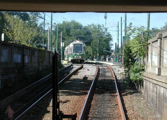 train is emerging from the subway, beyond Kenmore, for its run along the