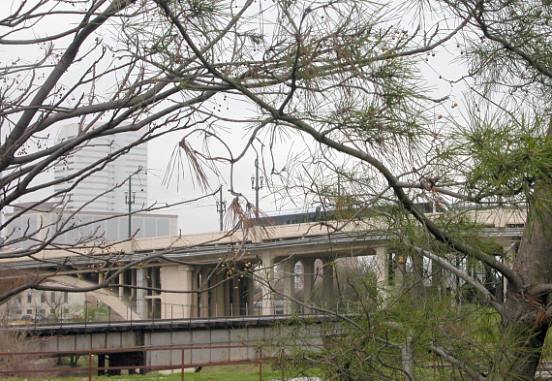 showing trees, parts of the skyline, the Main St. Bridge and a Union