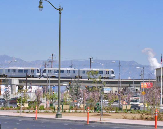 pocket park at Main and Alameda Sts. just north of downtown L.A. in
