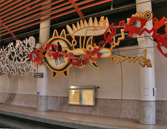 We are told that the design above the outbound platform provides "stylized contemporary depictions of
