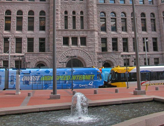 Lunchtime vendors on the plaza offer various fare during the work week. |