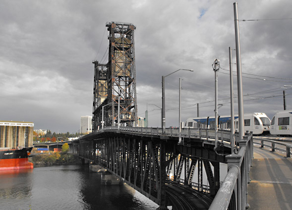 The bridge is owned by the Union Pacific Railroad, which carries freight and Amtrak