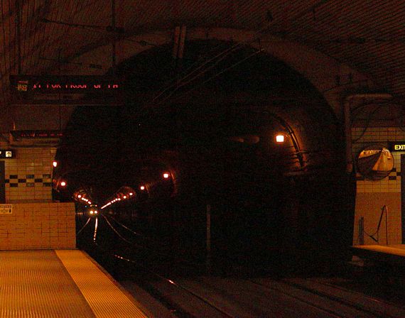 This view is at Forest Hill, deepest station on Muni. Lights from an