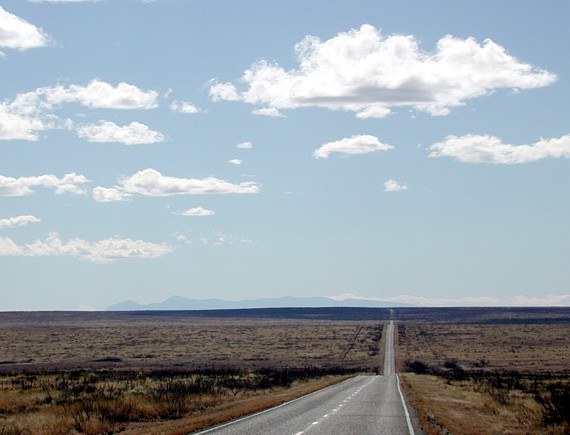 This image is from a few minutes later than the previous one in this series; but this time the view shows what is ahead in the direction of travel, and the lighting is entirely different. The Capitan Mountains lie far, far off in the southwest.